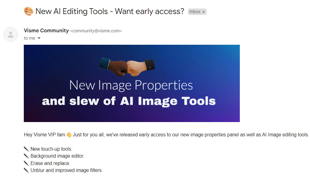 Here’s an example of Visme’s email newsletter that aims to educate its audience.