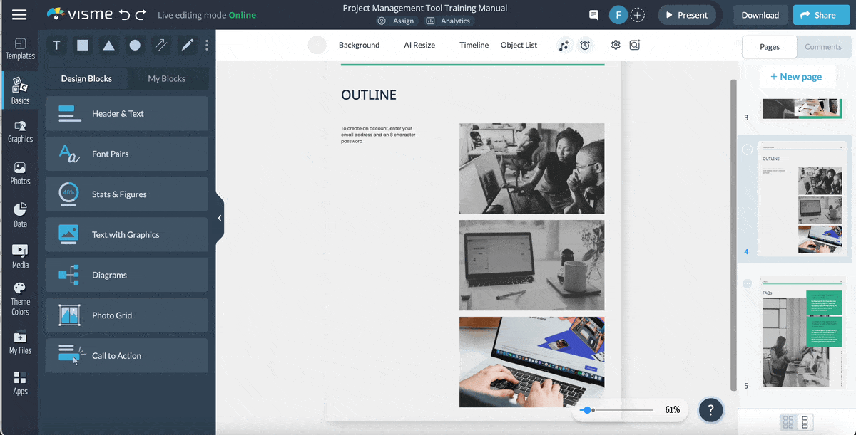 In the third part of this guide on creating effective training manuals, we’ll explore the 3 simple steps to creating a training manual with Visme.
