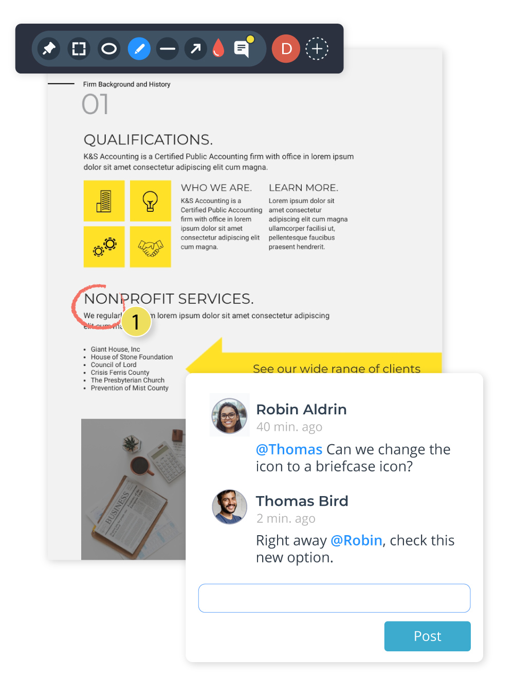 Concevez des comparaisons de produits, des études de cas, des fiches imprimables, des contenus d'email direct et bien plus pour aider à vendre vos produits et services à des prospects.