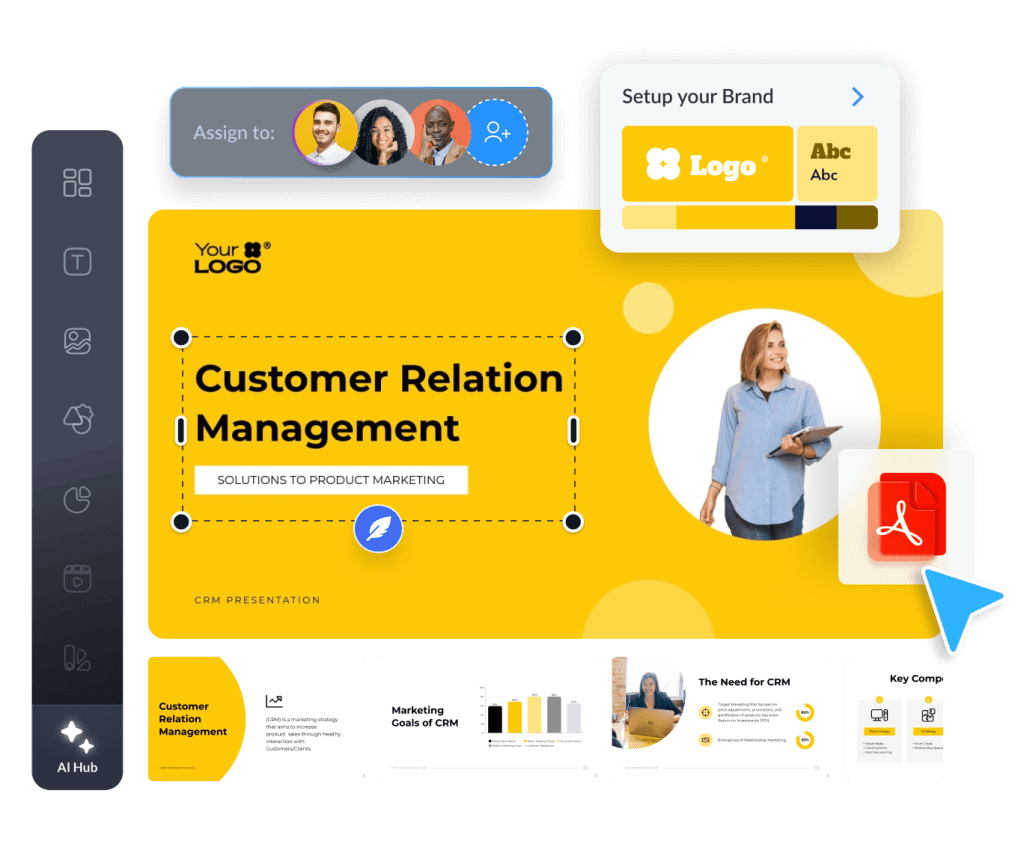 Empower every agent, adjuster, and regional office to deliver clear, compliant materials. Visme gives insurance carriers an all-in-one platform to create branded assets with oversight and control.
