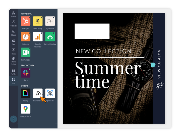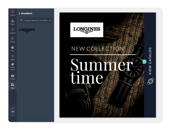 Our Brandfetch integration will help you pull big brand logos – or your brand’s logo – into your Visme projects with a simple search in our tool.