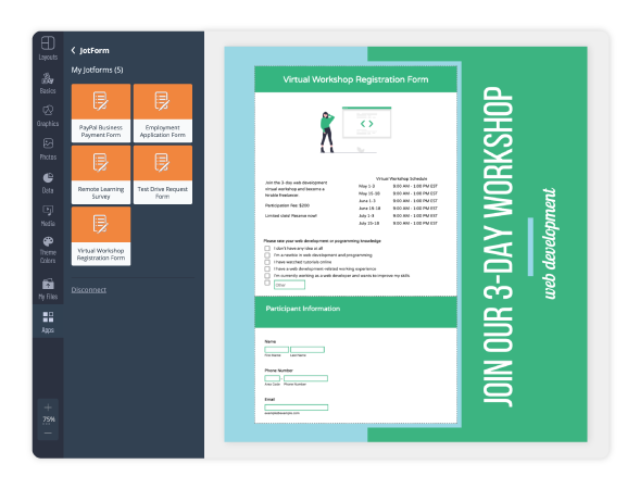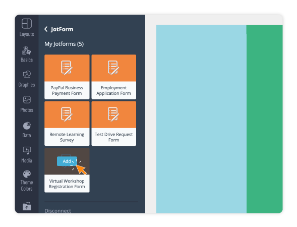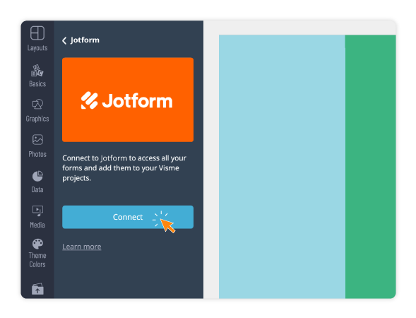 Embed your Jotform directly onto any Visme project. Pull in your existing Jotforms and collect any important information without ever leaving Visme.