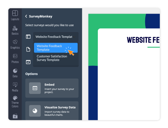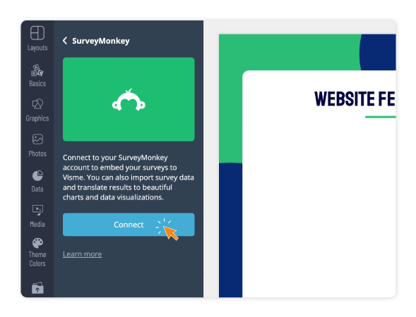 Embed your SurveyMonkey forms directly onto any Visme project, then create stunning data visualizations right from your survey data.