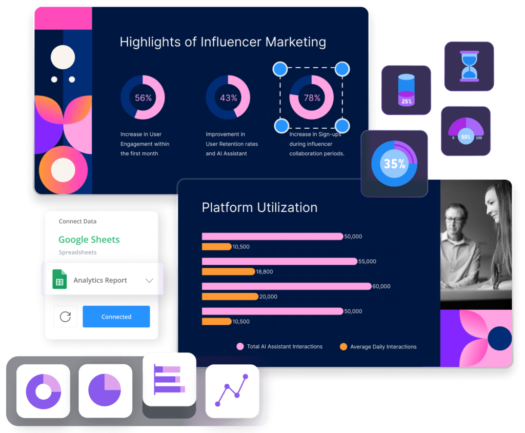 Save time, resources, and costs with a single, intuitive tool for data visualizations, guides, presentations, videos, and more. Plus level up your content production with tons of features and updates every month.
