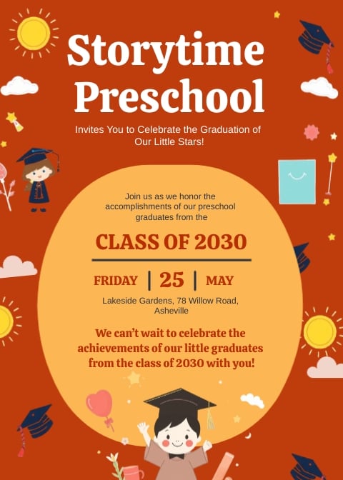 Invite students, family and respected teachers to your school's social events using this invitation template.