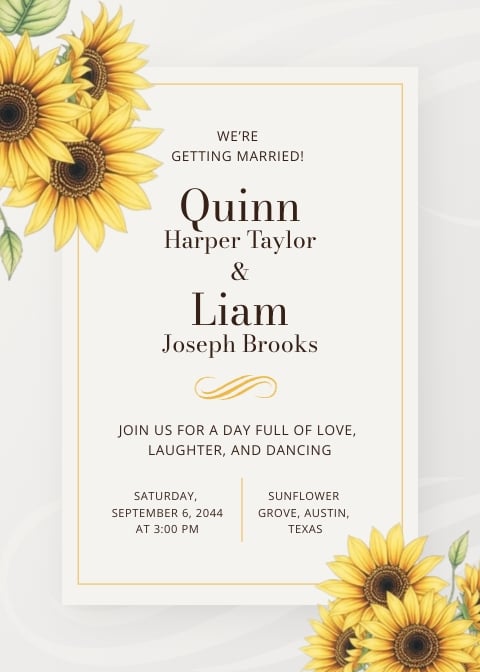 Sunflower Wedding Invitation Template