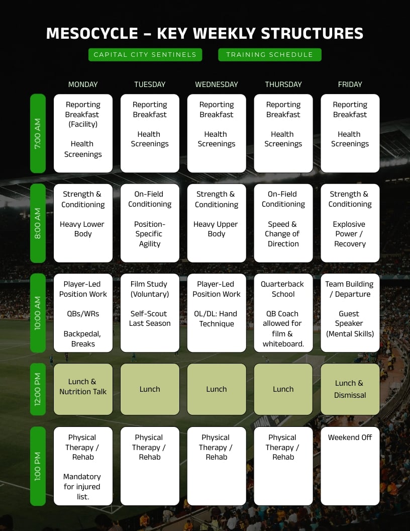 Football Team Schedule Template