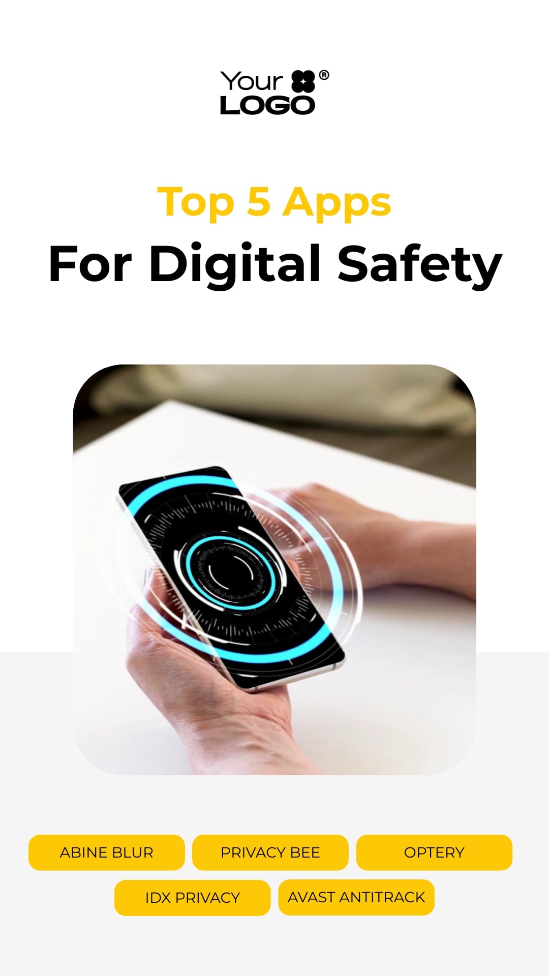 Sleek Top Apps For Digital Safety Listicle Video Vertical Template